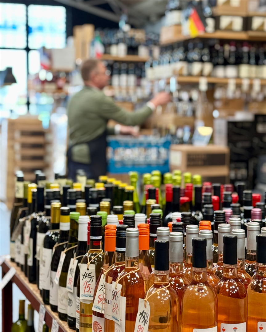 Nyd godt af vores udvalg af egen importerede vine, delikatesser og spiritus.