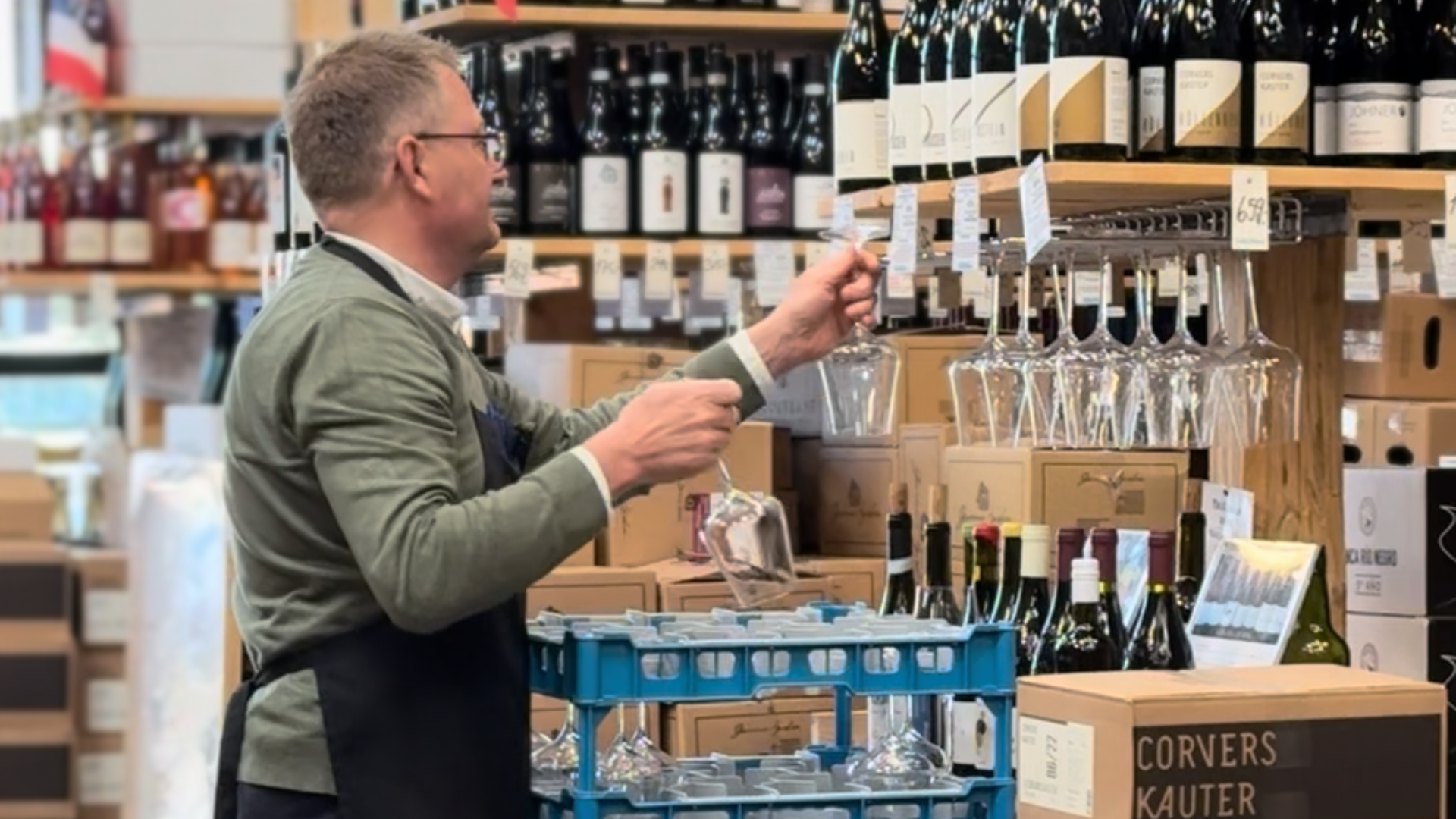 Glassene kommer i 20 stk. bakker og vi vasker dem op efter.
